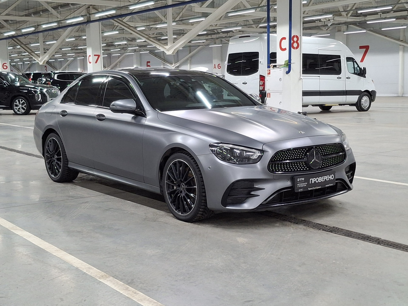 Автомобиль полностью обклеен матовой бронеплёнкой и имеет полный антихром. На машине стоят оригинальные диски R19 на новой зимней резине.